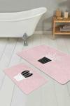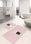 Siyah saksı detaylı ve pudra renginde modern tasarıma sahip 2'li banyo paspas seti, şıklığı ve fonksiyonelliği bir arada sunar.