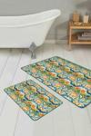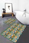 Soyut dalga deseninden ilham alan yeşil ve turuncu renklerin canlı uyumunu yansıtan bu 2'li banyo paspas seti, modern ve dinamik tasarımıyla banyolarınıza şıklık ve rahatlık katıyor.