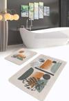 Soyut desenlerle bezenmiş turuncu ve yeşil renklerin uyumunu sunan 2'li banyo paspas seti, modern banyolara şıklık katmak için tasarlanmıştır.