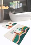 Soyut tropikal desenli, yeşil ve turuncu renklerin uyumuyla tasarlanmış bu 2'li banyo paspas seti, banyonuza şık ve modern bir dokunuş getirir.