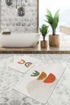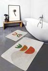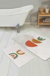 Bu 2'li banyo paspas seti, soyut geometrik desenleri ve turuncu ile yeşilin doğal tonlarını şıklıkla bir araya getirir.
