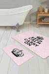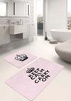 Taç ve yazılı siyah-pembe desenli 2'li kaymaz taban yıkanabilir banyo paspas seti, banyonuza zarif ve modern bir dokunuş katmak için tasarlanmıştır.