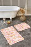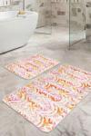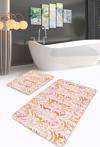 Turuncu ve pembe renklerin canlı yaprak temalı desenleriyle tasarlanmış bu 2'li banyo paspas seti, banyonuza sıcak ve doğal bir atmosfer kazandırır.