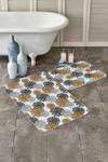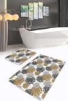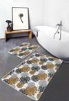 Turuncu ve siyah çiçek desenleriyle bezenmiş bu 2'li banyo paspas seti, banyonuza şıklık ve canlılık katmak için ideal bir seçimdir.