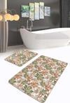 Turuncu ve yeşil yaprak desenleriyle doğadan esinlenmiş bu 2'li banyo paspas seti, banyonuza sıcak ve doğal bir atmosfer katacak özel tasarımıyla öne çıkar.