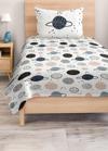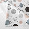 Uzay temalı, gezegen desenli pike takımı, çocuk ve genç odaları için idealdir.