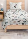 Uzay temalı tek kişilik çocuk ve genç odası pike takımı, eğlenceli ve yaratıcı bir odanın tamamlayıcısıdır.