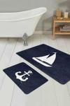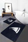Yelkenli ve çapa figürlerinin yer aldığı siyah-beyaz deniz temalı banyo paspas seti ile banyonuza şıklık katın.
