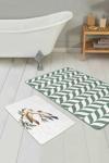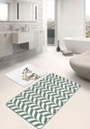 Yeşil-beyaz yaprak desenli büyük paspas ile kuş figürlü küçük paspastan oluşan 2'li banyo paspas seti, banyonuza doğal ve şık bir atmosfer katar.