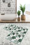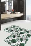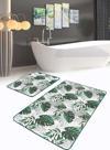 Yeşil ve beyaz renklerin hakim olduğu, tropikal yaprak desenleriyle süslenmiş bu 2'li banyo paspas seti, hem şık hem fonksiyonel bir kullanım sunar.