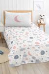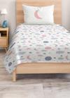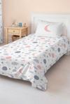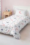 Yıldızlar ve bulutlar desenli bu tek kişilik pike takımı, çocuk ve genç odası için tasarlanmış ideal bir yatak örtüsüdür.
