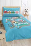 Yolda eğlenceli tasarımlarla süslenmiş bu tek kişilik çocuk ve genç odası pike takımı, odalarınıza neşe katmak için tasarlandı.