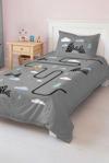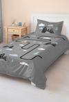Yolda giden araç deseni ile tasarlanmış bu pike takımı, çocuk ve genç odaları için idealdir.