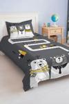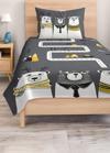 Yolda Oyun Zamanı Desenli çocuk ve genç odası pike takımı, enerjik ve eğlenceli bir atmosfer yaratmak için tasarlandı.