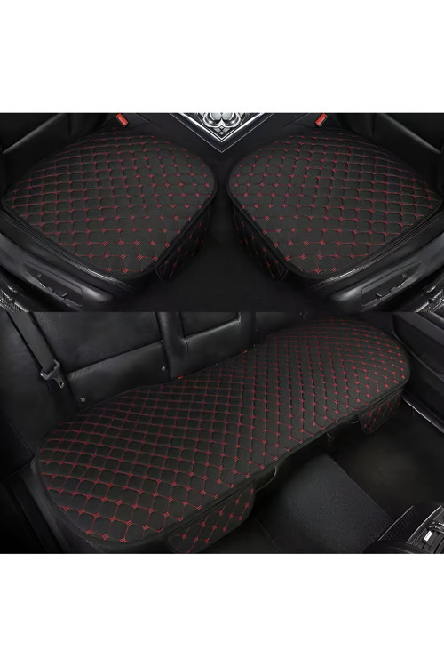 Rebols Tay Tüyü Cepli & Terletmez Oto Koltuk Minder Seti - Koltuk Koruma Kılıfı (3'Lü Set Siyah-Kırmızı)