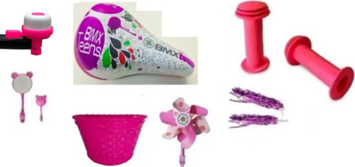 BİSİKLET PRENSES DEKORATİF SET 6 PARÇA (ZİL AYNA SELE SEPET PÜSKÜL ELCİK RÜZGAR GÜLÜ )