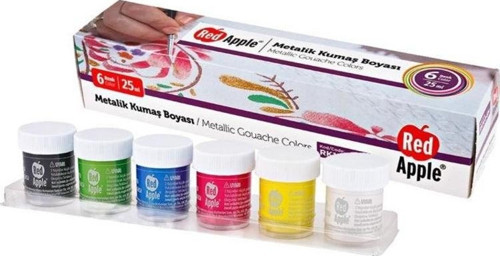 Red Apple Metalik Kumaş Boyası 6 Renk x 25 ml. Sıralı Set
