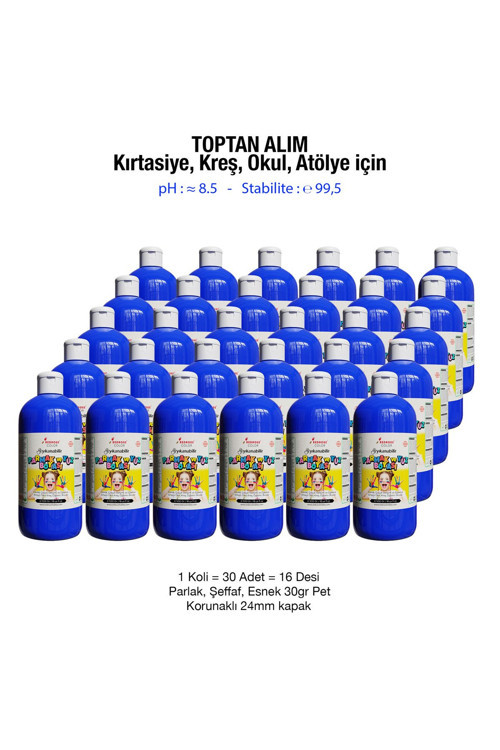 Red Rose Mavi Parmak Ve Yüz Boyası Süper Yıkanabilir Özel Formül Kırtasiye Kreş Okul İçin 500Gr 30'Lu Koli