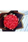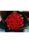 kurdeleden kırmızı yapay gül 20 adet kurdeleden yapılmış kırmızı gülden oluşmaktadır dış ambalajı siyahtır cipso isteğe göre konulmaktadır