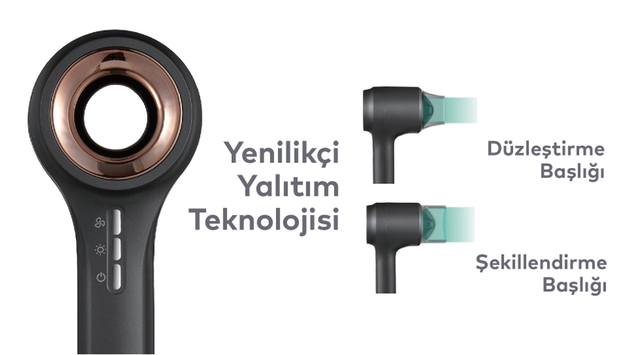 Farklı saç şekillendirme ihtiyaçlarınız için farklı başlıklar sunar. Düzleştirme başlığı ve şekillendirme başlığı ürün ile birlikte sunulmaktadır. Düzleştirme başlığı ile saçınızı hızlıca kurutup düzleştirirken, Şekillendirme başlığı ile detaylı şekillendirme yapabilirsiniz.