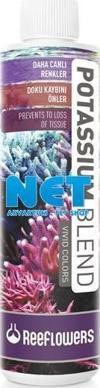 ReeFlowers Potassium Blend, yüksek yoğunlukta iyonik potasyum çözeltisidir. 1 lt’de en az 100.000 ppm potasyum içerir. Potasyum mercan iskeletinin önemli bir bileşenidir. Eksikliği halinde renklerde matlaşma ve doku kaybı gibi problemler görülür. İçerdiği pigmentler bazı poliplerdeki mor ve mavi rengi verir, nörolojik fonksiyonları düzenlemede önemlidir ve akvaryumdaki canlılar tarafından tüketilir.Her akvaryumda potasyum tüketim oranı farklıdır.