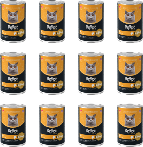 Reflex Plus Sos İçinde Et Parçacıklı Dana Etli Yetişkin Kedi Konservesi 400 Gr (12 Adet)