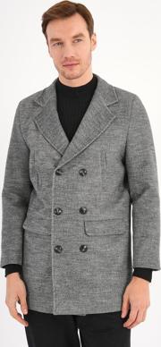 Asil Acar Home Astarlı Balık Sırtı Kaşmir Kaşe Kaban - Gri - 36