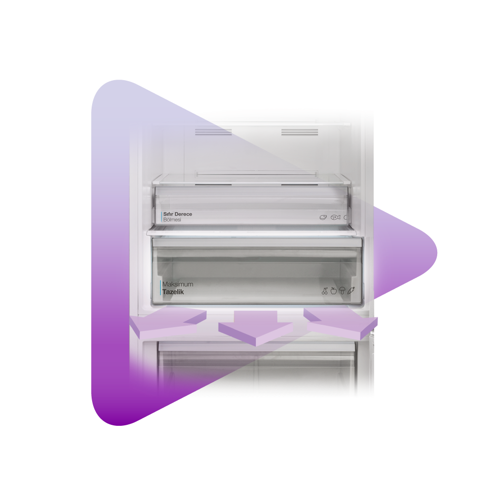 0°C Bölmesi sayesinde dondurucudan çıkardığınız yiyeceklerinizi sağlıklı bir şekilde çözülmeye bırakabilirsiniz. Ek olarak hızlıca tüketmeniz gereken gıdalarınızı burada muhafaza ederek tazeliklerini koruyabilirsiniz.