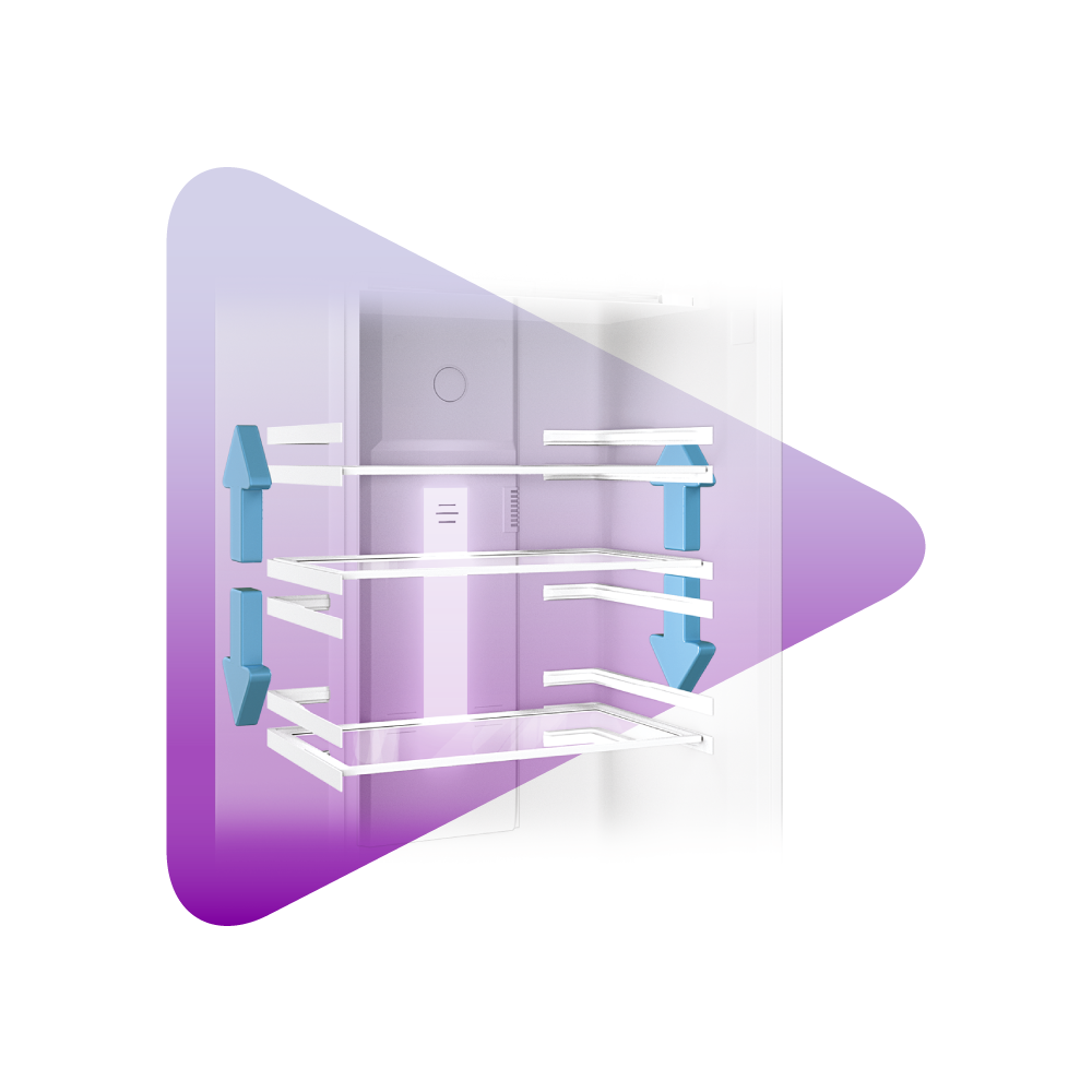 Ayarlanabilir Cam Raf sayesinde dondurucunuzun raflarını ileri geri hareket ettirebilir ve yiyecekleriniz için geniş alanlar yaratabilirsiniz.
