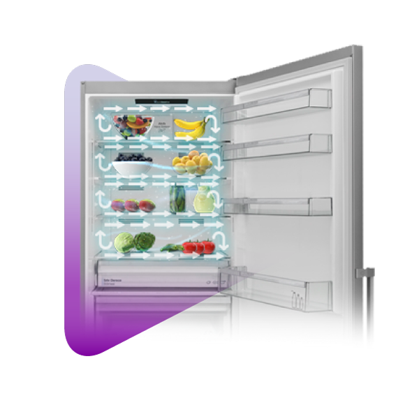 Çok Yönlü Soğutma Sistemi teknolojisi sayesinde rafların her birine ayrı ayrı hava akışı olur ve dengeli bir soğutma sağlanmış olur. Böylelikle derin dondurucunuzun her rafında aynı seviyede tazelik yakalanır.