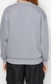 Ersefa Büyük Beden Oversize Bisiklet Yaka Standart Kol Gri Kurdele Detaylı Tarzl Örme Sweatshirt