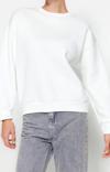Regular Bisiklet Yaka Düşük Kol Regular Kalın İçi Polarlı Normal Kalıp Basic Örme Sweatshirt