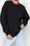 Regular Bisiklet Yaka Düşük Kol Regular Kalın İçi Polarlı Normal Kalıp Basic Örme Sweatshirt