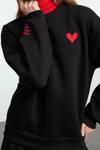Bu kadın sweatshirt, rahatlığı ve modern tarzı bir araya getirerek hem günlük giyimde hem de şık kombinlerde kendine yer buluyor.