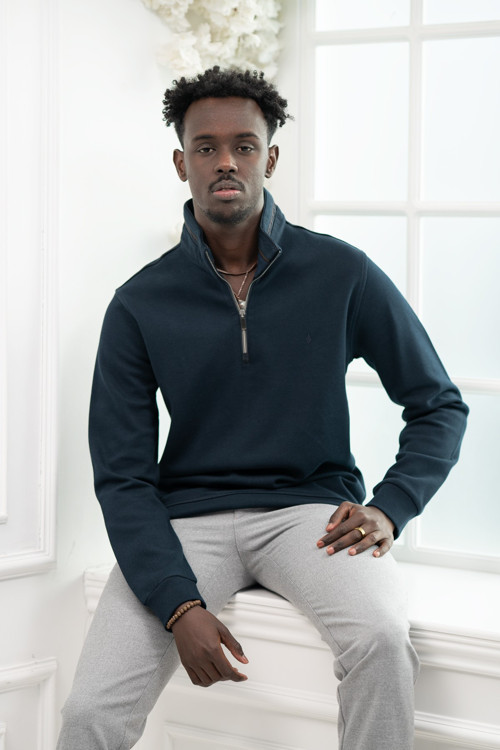 Regular Fit Biyeli Fermuarlı Dik Yaka Armürlü Pamuklu Sweatshirt