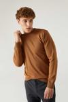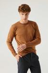 Regular Fit Camel Tüylenme Yapmayan Bisiklet Yaka Pamuklu Triko Kazak