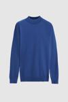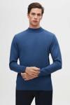 Regular Fit Mavi Pamuk Karışımlı Yarım Balıkçı Triko Kazak