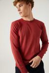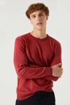 Regular Fit Nar Çiçeği Tüylenme Yapmayan Bisiklet Yaka Pamuklu Triko Kazak
