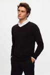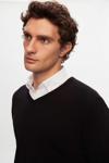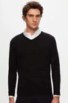 Regular Fit Siyah Düz V Yaka Triko Kazak