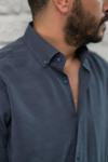 Erkek Lacivert Slim Fit Dar Kesim Sert Spor Yaka Gömlek - Image 1