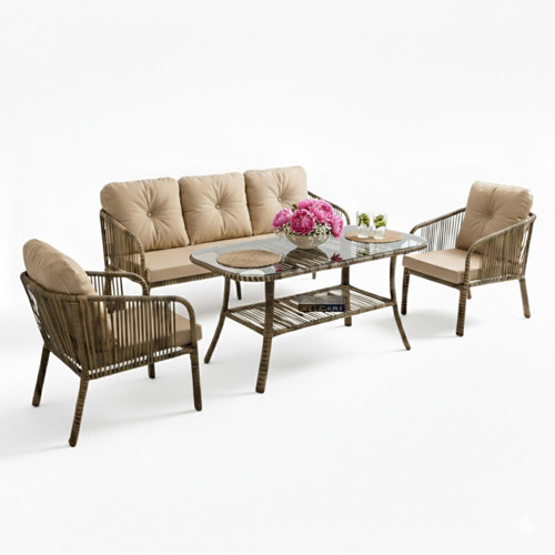 Açık Kahve rengi ile her dekorasyona mükemmel uyum sağlayan bu bahçe mobilyası, uzun ömürlü kullanım sunan dış mekan mobilyası kategorisindedir. Beş kişilik konforlu oturma alanı ile sevdiklerinizle keyifli anlar geçirmenizi sağlar. Balkon mobilyası olarak da şıklığı ve sağlamlığıyla dikkat çeken bu takım, küçük alanlar için pratik ve fonksiyonel bir çözüm sunar.