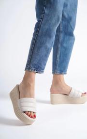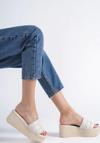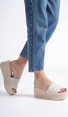Reına Dolgu Topuklu Ortopedik Taban Hasır Görünümlü Kadın Terlik - Kt Krem