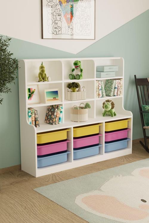 Sinous 9 Sepetli Çok Amaçlı Oyuncak Dolabı Beyaz, özel dayanıklı paketi içinde demonte olarak sevk edilir. Kitaplığımızın raflarında 18mm kalınlığında 1. Kalite yonga levha kullanılmıştır. E1 standartları dahilinde, kanserojen madde içermez. Kitaplığımızın gövdesinde 1. Kalite sağlam Yonga levha kullanılmıştır. Kaplaması çizilmeye dayanıklıdır. Rahatça silinebilir ve temizlenebilir.