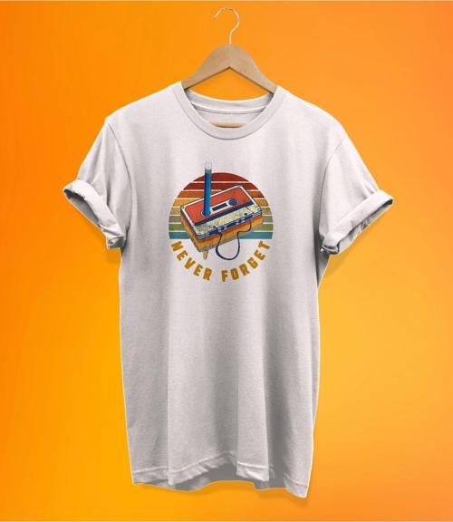 Retro Never Forget Baskılı Siyah, %100 Pamuk Basic (Normal Beden) T-Shirt