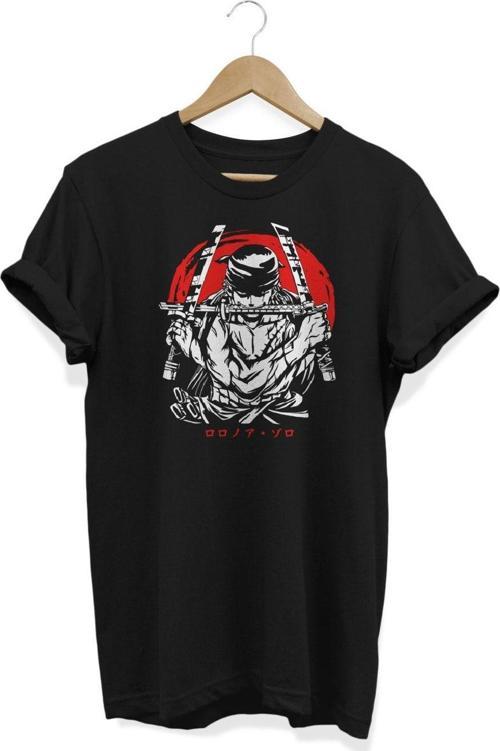 Rahat kesimi ile günlük kullanıma uygun, Roronoa zoro anime temalı tasarımıyla dikkat çeken siyah t