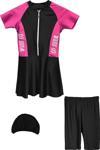 Remsa Uv Korumalı Etekli Taytlı Kısa Kol Kız Çocuk Mayo Mira 1511 Siyah Fuşya