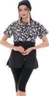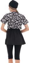 Kısa kollu paraşüt üst, likralı kapri, havuz bonesi şeklinde 3 parçadır.