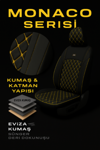 Monaco Serisi, Renault Fluence kullanıcıları için geliştirildi. Özel dokulu Eviza yüzey uzun sürüşlerde serin tutar yan deri detaylar kabine premium bir görünüm katar. Özel kalıbı sayesinde araç içi fonksiyonellik korunur. Ticari 2+1 arka bank yapısına eksiksiz oturur. Airbag uyumlu dikiş teknolojisi güvenli sürüşe destek olur. Montaj kancalarıyla hızlı ve iz bırakmayan kurulum yapılır.