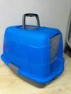 Kediler için, çevrenin kirlenmesini önleyecek şekilde yüksek, siperli kapalı kedi tuvalet kabı.