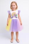 Rengarenk Etekli Kız Çocuk Parti Elbisesi LİLA